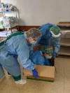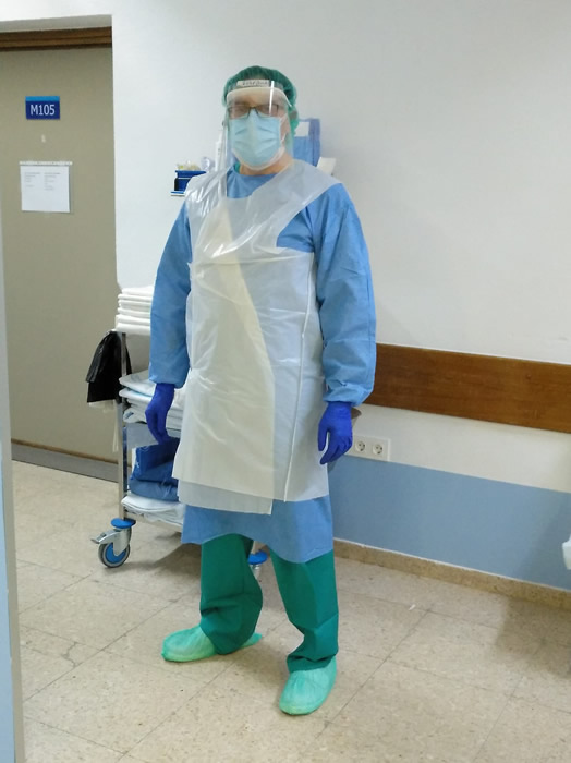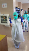 la bata impermeable, luego las gafas o pantalla protectora y por